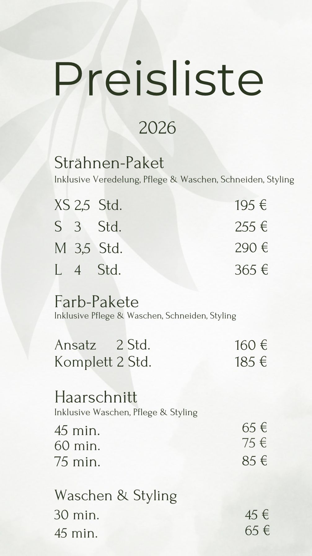 Meine Farb- und Strähnenbehandlungen biete ich als klar devinierte Pakete an. Diese orientieren sich am gewünschten Ergebnis, dem zeitlichen Aufwand und deiner Haarstruktur.